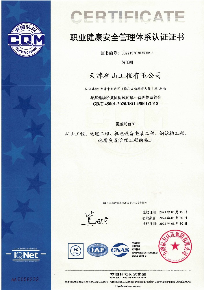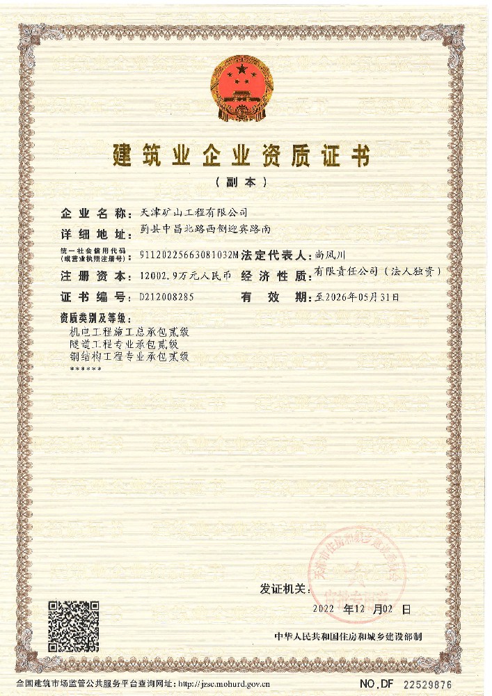 天津礦山工程有限公司(以下簡稱公司)始建于1965年,隸屬中國建材集團有限公司,是從事礦山總承包、礦山開采運營、礦山設計與咨詢、土石方爆破、生態恢復治理、鋼結構制作安裝、機電設備安裝以及工程測量的專業化礦山施工企業和礦山開采運營總承包服務商。具備礦山總承包和爆破雙一級資質。 公司始建于1965年,總部位于天津市···